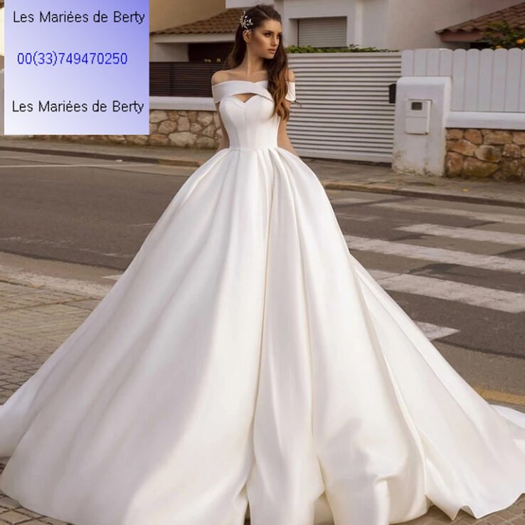 Robe de mariée chic glamour en tissu satin avec strass longue manche